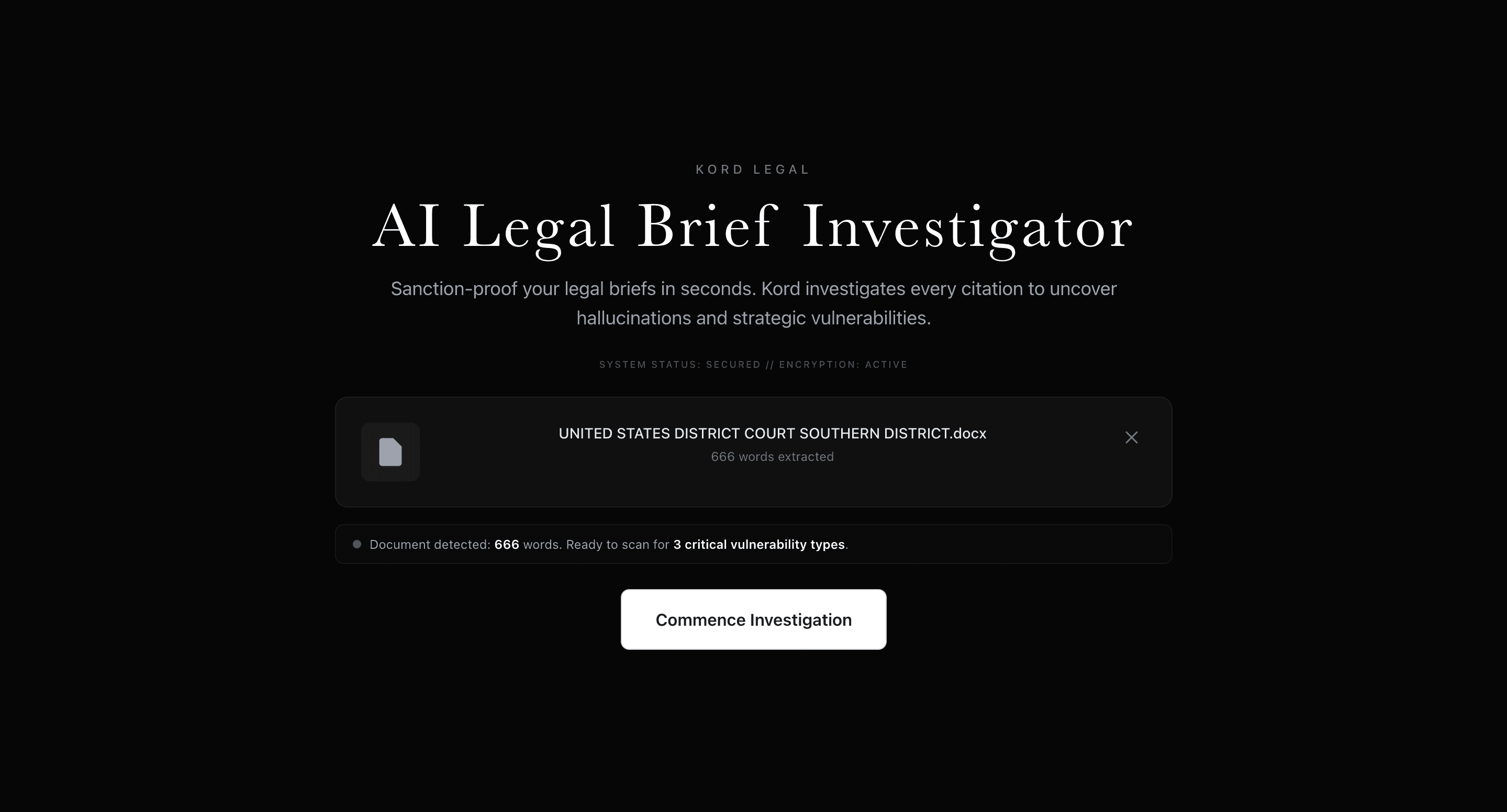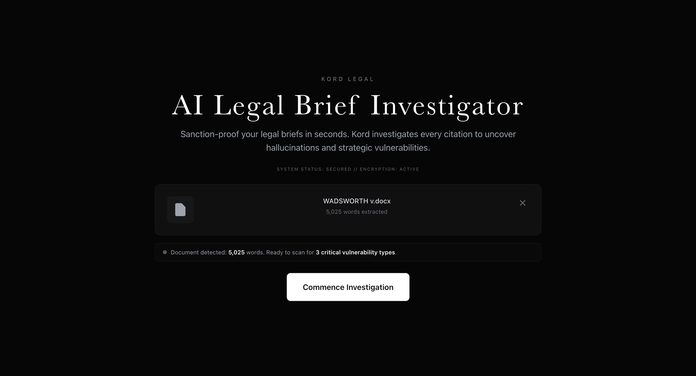Kord Legal is an AI-powered legal brief investigation tool designed to help lawyers identify hallucinated citations, fabricated cases, and weak legal authority before filing. It analyzes uploaded briefs, flags risky language, verifies citations against legal databases, and surfaces how opposing counsel could exploit vulnerabilities in the document.